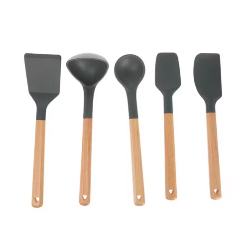 Each tool is crafted to handle high heat without melting, warping, or scratching your cookware, making it ideal for use with non-stick pots and pans. The ergonomic wooden handles provide a comfortable, firm grip while adding a natural, rustic charm to your countertop.